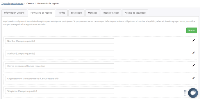 - Ve a tu evento y allí, dirígete a Registro, luego a Tipos. Haz clic en la tarjeta del tipo de participante que deseas editar y después ve a la pestaña Formulario de registro.