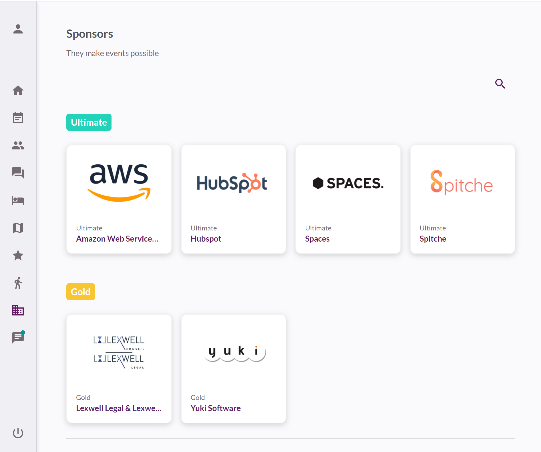 - Los logotipos de tus patrocinadores se mostrarán en la página principal del Escenario Virtual. Si tienes más de cinco patrocinadores, sus logotipos rotarán en un formato de carrusel.