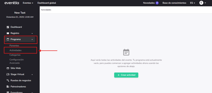 - Ve al módulo "Programa" y a la sección "Actividades".