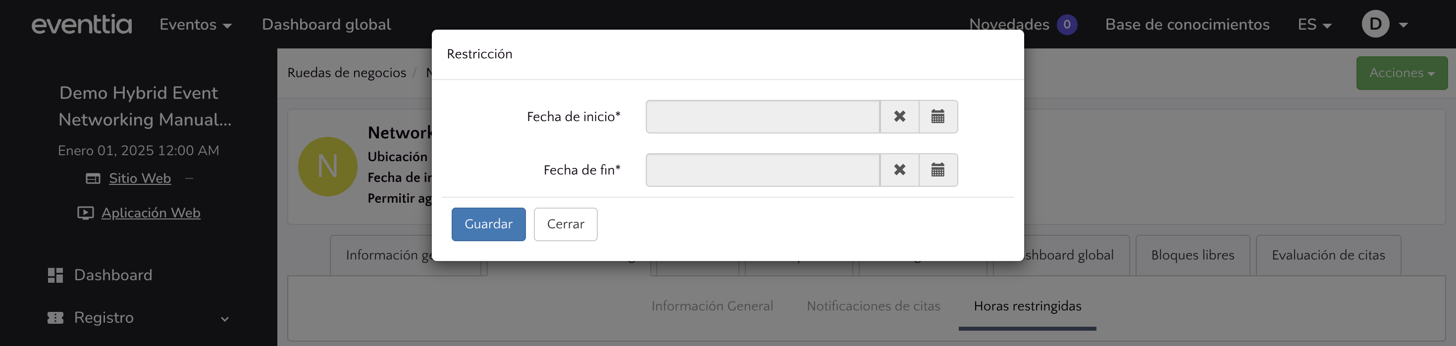 Existen dos tipos distintos de restricción de horario que pueden aplicar durante tu sesión de networking: