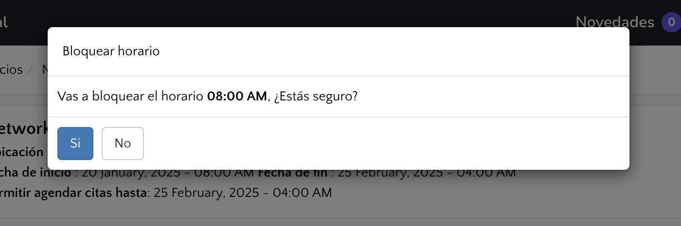 - El horario será en gris, y nadie podrá solicitar una cita para esta hora.