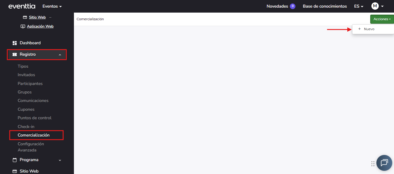 - Primero, ve al módulo de "registro" y a la sección de "comercialización".
