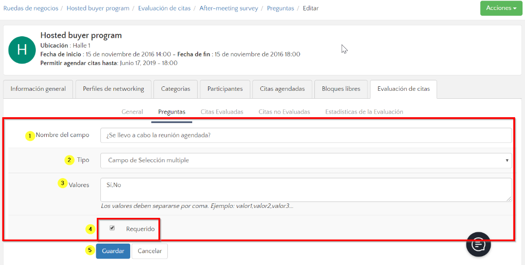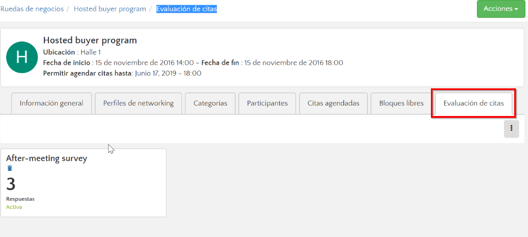 Eventtia ha desarrollado una herramienta de evaluación de reuniones B2B, la cual se describe a continuación.