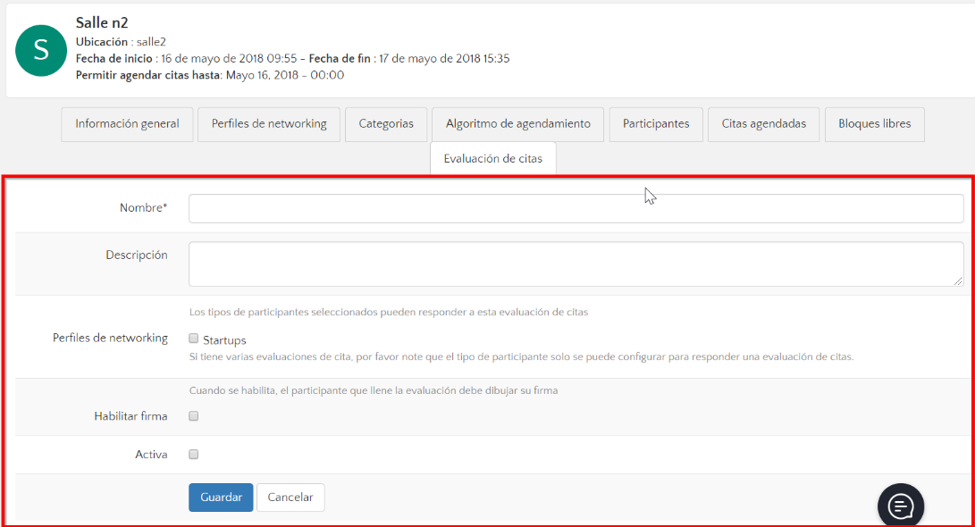 - Haz clic en "nueva evaluación de citas":