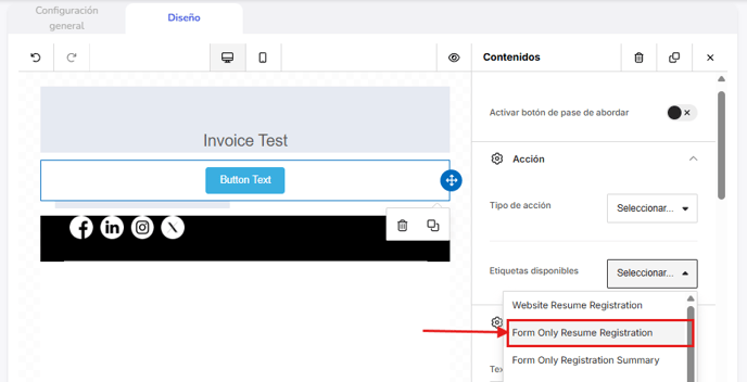 - En la sección de Etiquetas disponibles, selecciona “Form Only Resume Registration"