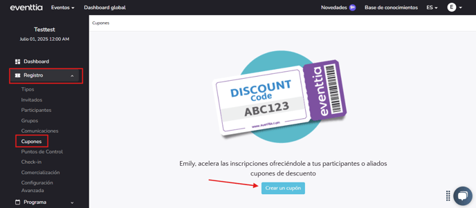- Ve al módulo de "Registro" y a la pestaña de "Cupones".