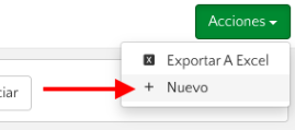 - Si ya creaste un cupón, haz clic en el botón verde "acciones", y en "nuevo".