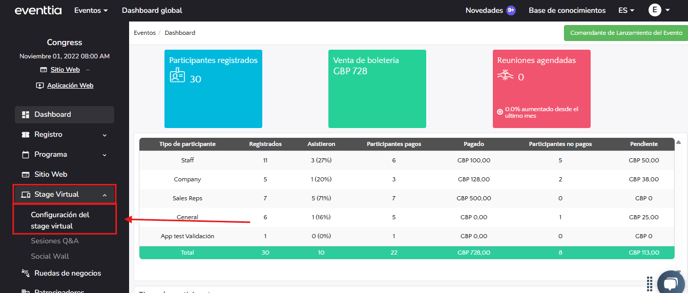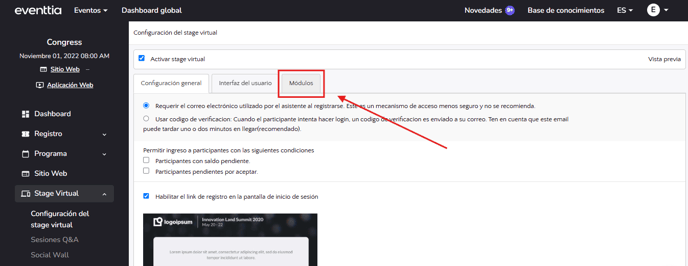 Accede al módulo "Stage Virtual".