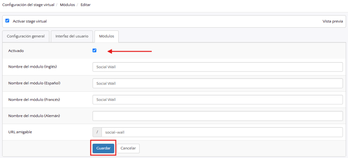 - Luego, marca la casilla para activarlo y asegúrate de que el nombre del módulo esté configurado según tus necesidades.