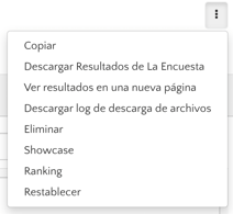 - Para descargar el reporte del Quiz, ve a los tres puntos y selecciona “Descargar Resultados de la Encuesta”. También puedes ver los resultados en una nueva página, descargar el registro de descargas de archivos o eliminar la encuesta.