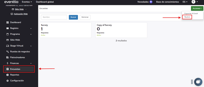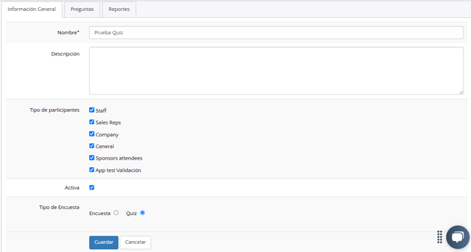 - Llena el formulario con los detalles de la encuesta (nombre, descripción etc.) y haz clic en "Guardar".