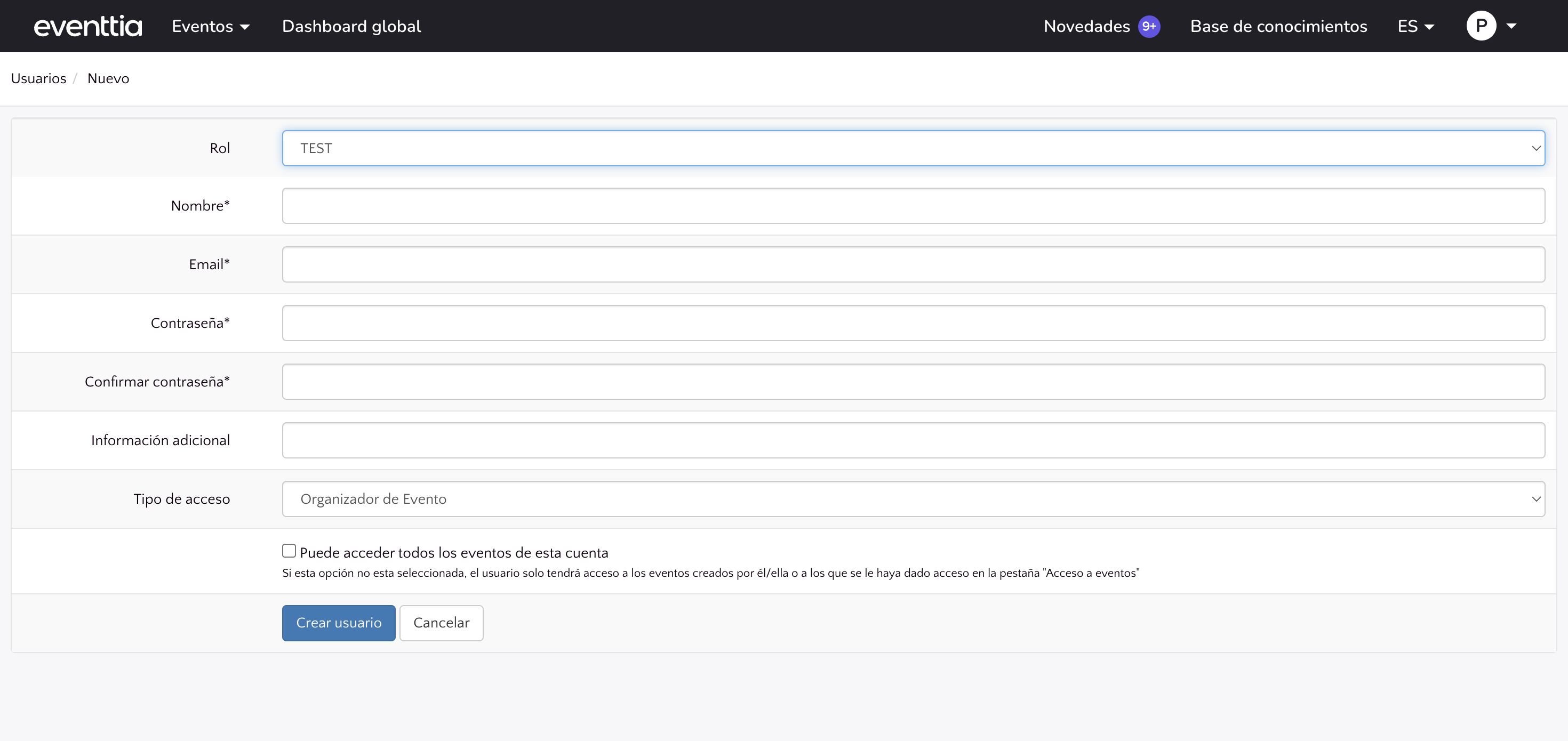 Para compartir información y acciones con otros miembros de tu equipo, Eventtia te permite crear varios usuarios con diferentes roles y permisos.