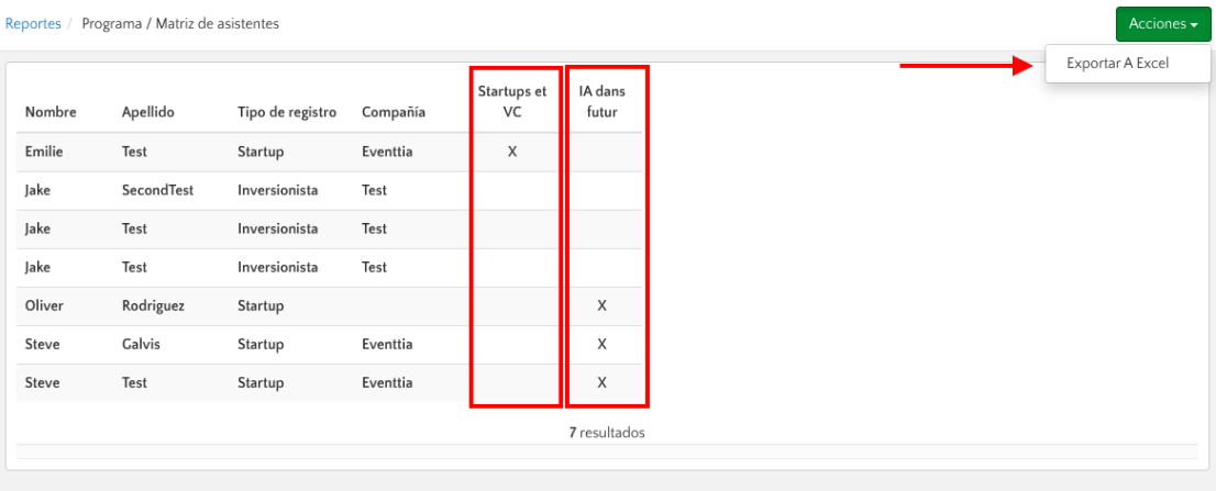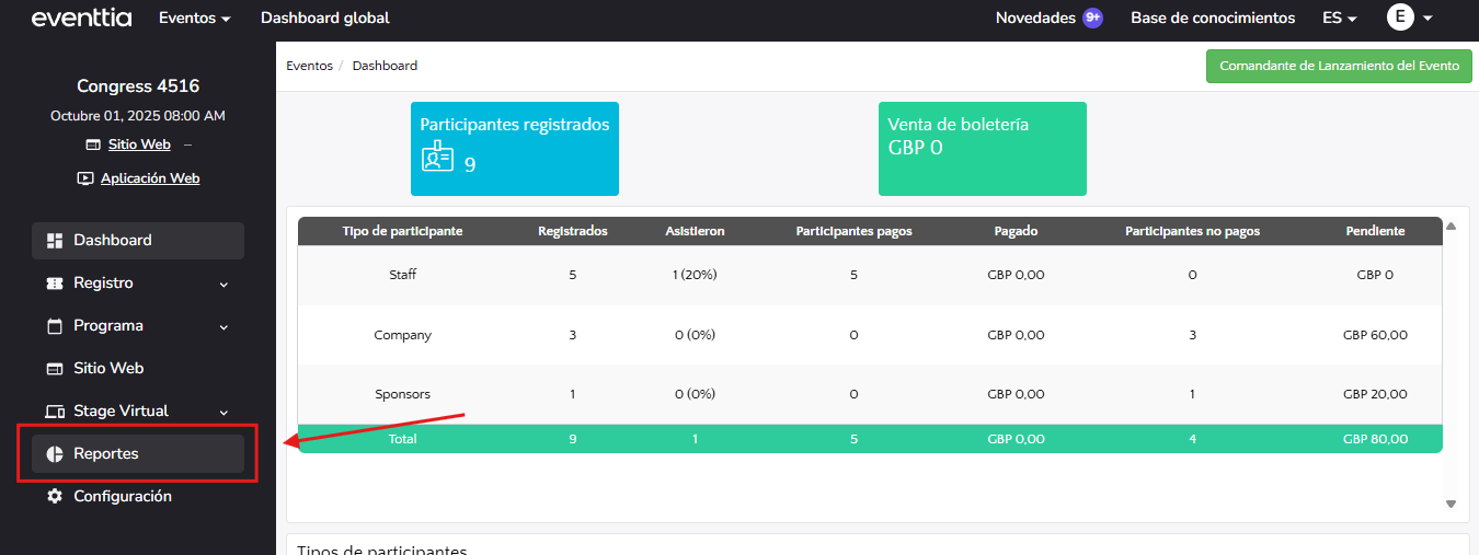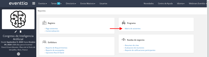 • La matriz de participantes del evento se encuentra directamente en el módulo "Reportes".