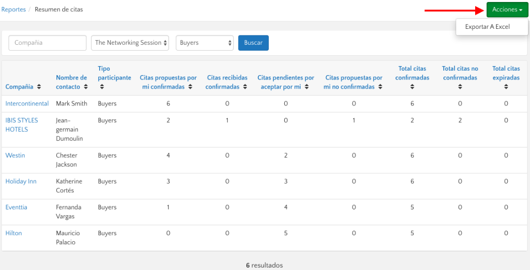 • Y como lo vimos antes, puedes exportar esta información a Excel, haciendo clic en el botón verde "Acciones".