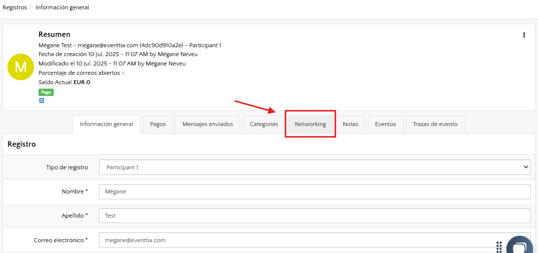 Crea siempre tu sesión de Networking antes de registrar participantes