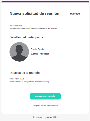 - Los correos electrónicos se envían a través del dominio de Eventtia.