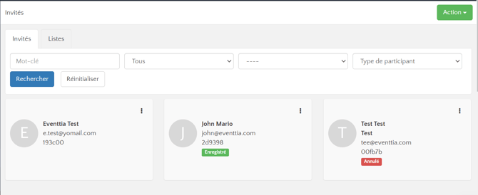 - Acceptés : Les invités avec la mention verte “Enregistré”
