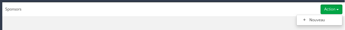 - Commencez à ajouter les différents sponsors en cliquant sur le bouton vert « Actions », en sélectionnant « Nouveau », puis en saisissant les informations et le logo.