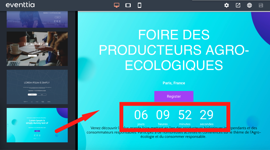 Dans cet article, nous allons vous montrer comment ajouter un compte à rebours à votre site Eventtia afin de mettre en avant la date de début de votre événement.