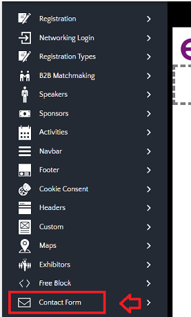 - Ensuite, cliquez sur le bloc "Contact form" dans le menu de gauche de l'écran :