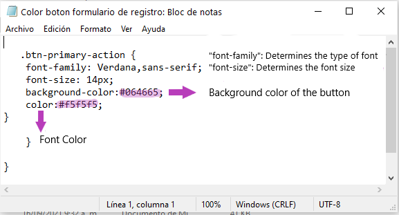 Ouvrez le fichier, modifiez les codes de couleur (#HEX), la taille de la police et la couleur de la police selon vos préférences et enregistrez les modifications.