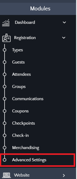 Depuis le back office de votre événement, allez dans le module "Inscription" et cliquez sur le bouton "Paramètres avancés":