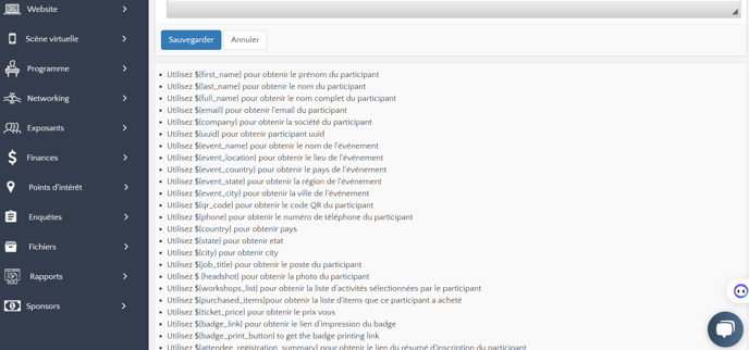 PS: Eventtia vous propose les balises qui peuvent vous permettre de personnaliser vos messages. Copiez et collez les balises dans le message afin d’envoyer des messages automatiques personnalisés incluant leurs données personnelles à chacun de vos participants.