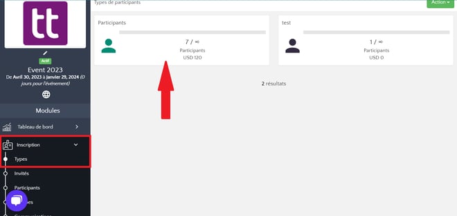 • Rendez-vous dans le module Inscription et cliquez sur « Types ».