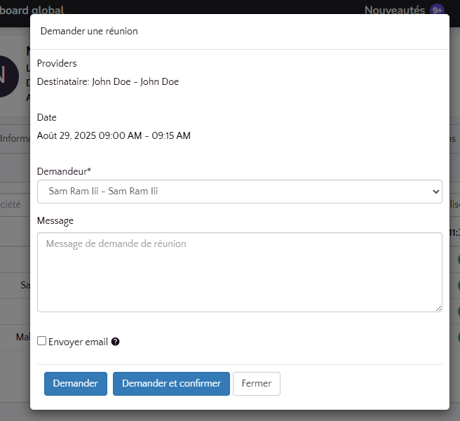 - Ensuite, envoyez la demande en cliquant sur Demander ou envoyez la demande et confirmez directement avec le bouton Demander et confirmer.