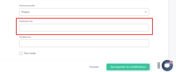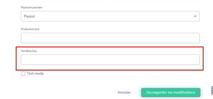 - Le champ "Sandbox key" de votre compte Eventtia apparaîtra.