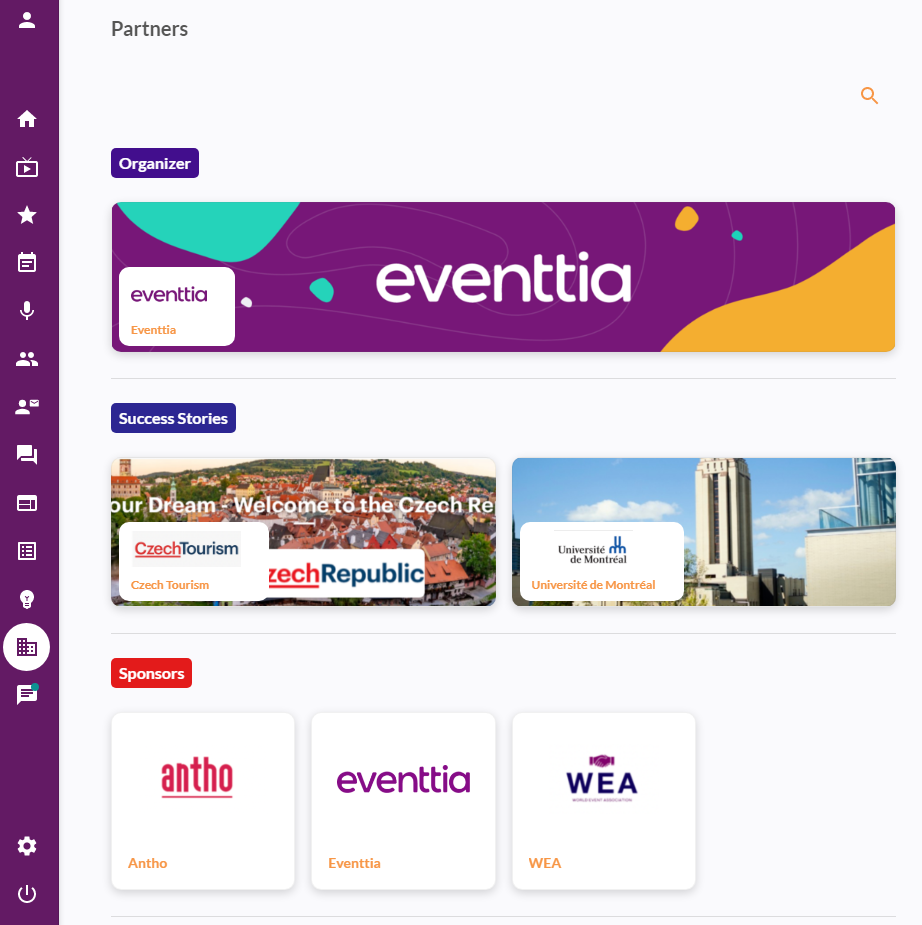 - Dans la barre de navigation sur le côté gauche de votre écran sur le backend d'Eventtia, allez à l'option "Sponsors".