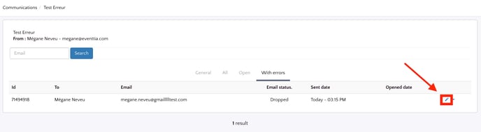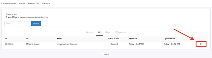 - For more detailed information on the status of each message, simply click on the "All" tab. This will provide you with the sending details for each individual message. If you need to resend a specific message, you can do so easily by clicking the paper plane icon next to the corresponding address line.
