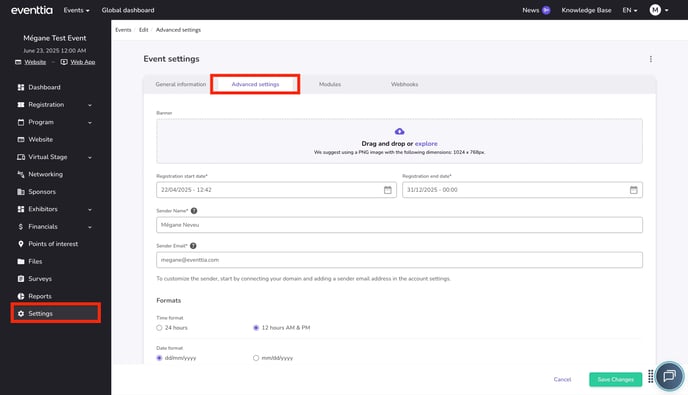 - Log in to your Eventtia account and select the event where you want to integrate Stripe.