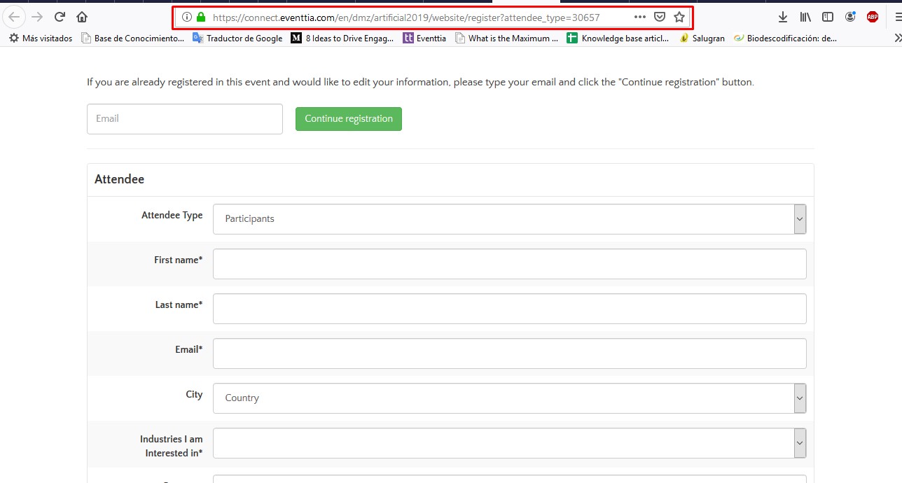 - Afterwards, go to the section of the website where you want to embed the content — for example, the registration form, the speakers section, or any other relevant page. The link you need is the one that appears in your browser’s navigation bar.