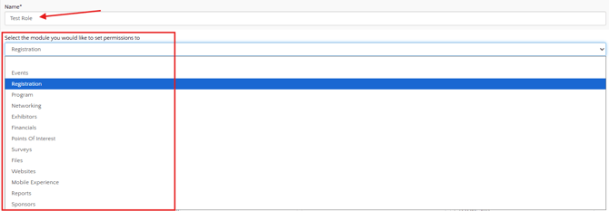 Even if the role is designed specifically for registration, you can still configure permissions for other modules such as Program, Networking, and others if needed.