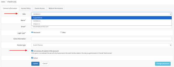- Additionally, you can define whether this user will have access to all events within the account by enabling the option “Can access all events in this account.”