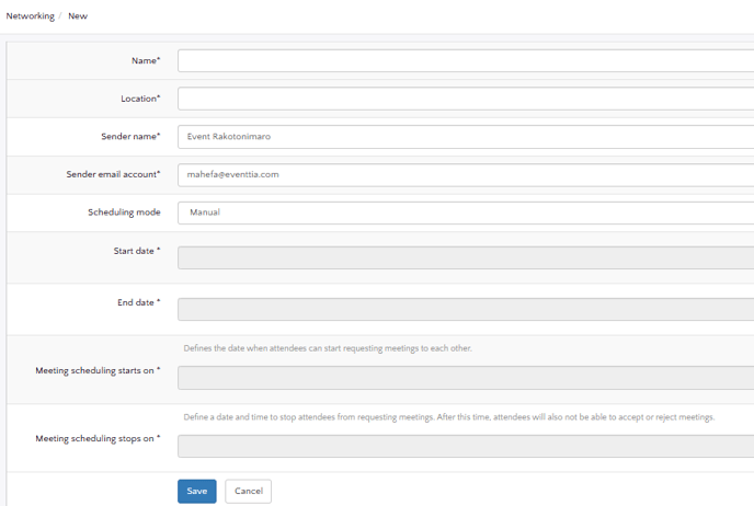 - Start and End dates: Those are the dates between which the Networking session will be taking place.