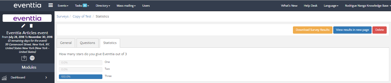 - Once your questionnaire has at least one question, a "Statistics" tab appears, giving you access to the results of each question (in percentage).