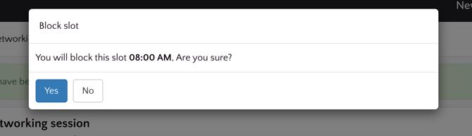 - To enable this option, go to the "Networking profiles" tab of the relevant networking session, then to "General Information". Activate the "Can block time slots" option.