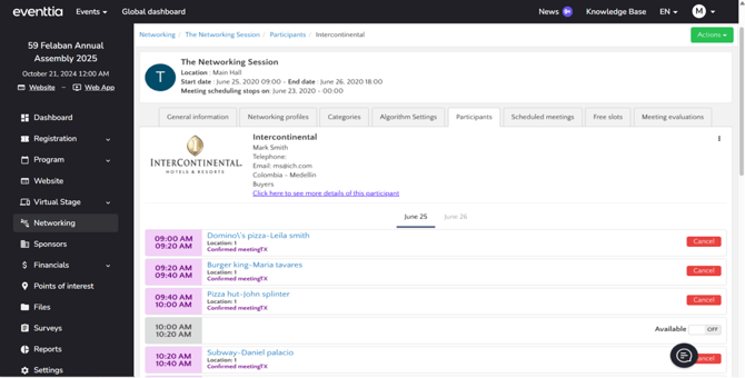 The event organizer can also check participants' agendas individually in Eventtia Backoffice.