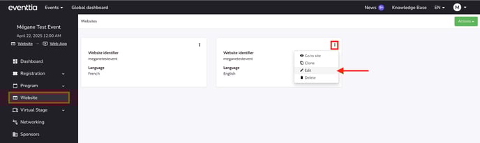 - To get started, go to the web composer by navigating to the "Website" module, then click on the three dots and select "Edit."