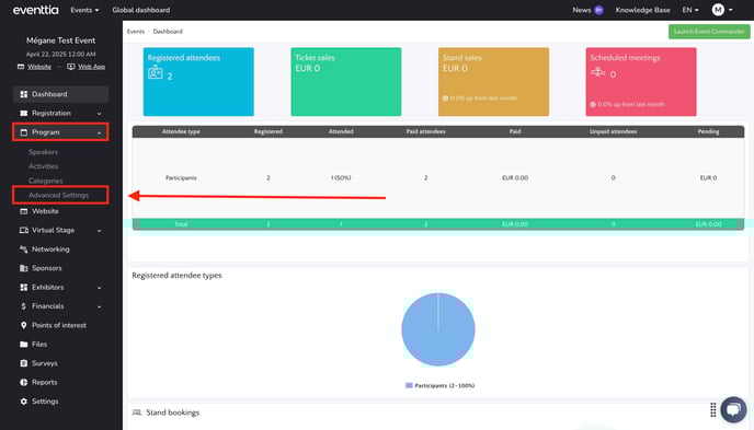 - Navigate to your event within Eventtia.