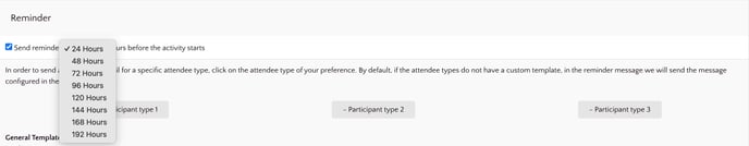 - Select how many hours before the activity starts to send the attendees reminder.