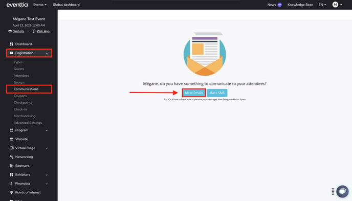 - Create or edit your email message. Check out this article: How to send emails to your attendees.