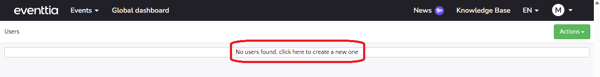 In the user management page that appears, if this is the first time you create a new user for your account, click on No users found, click here to create a new one.