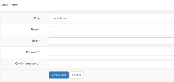 Then, you'll have to add the information of the new user, as below. Click on Create user to save the user.