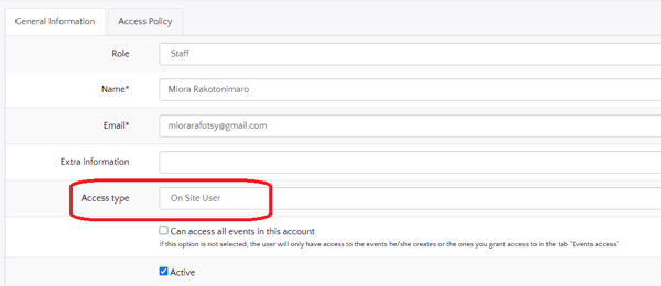 This is the type of access for users that should have access to the administrative area of Eventtia and Eventtia's On Site app, according to their assigned roles.