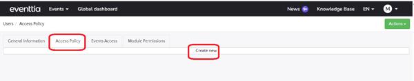 To create one, enter the Access Policy tab and click on Create new or Actions then New.